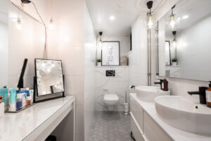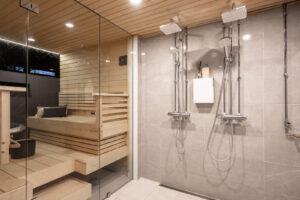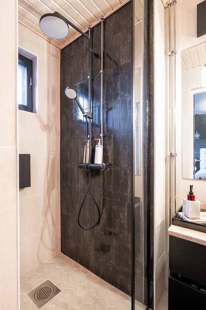 • Varusteet: lattialämmitys, lattiakaivo, suihku, suihkuseinä, bidee-suihku