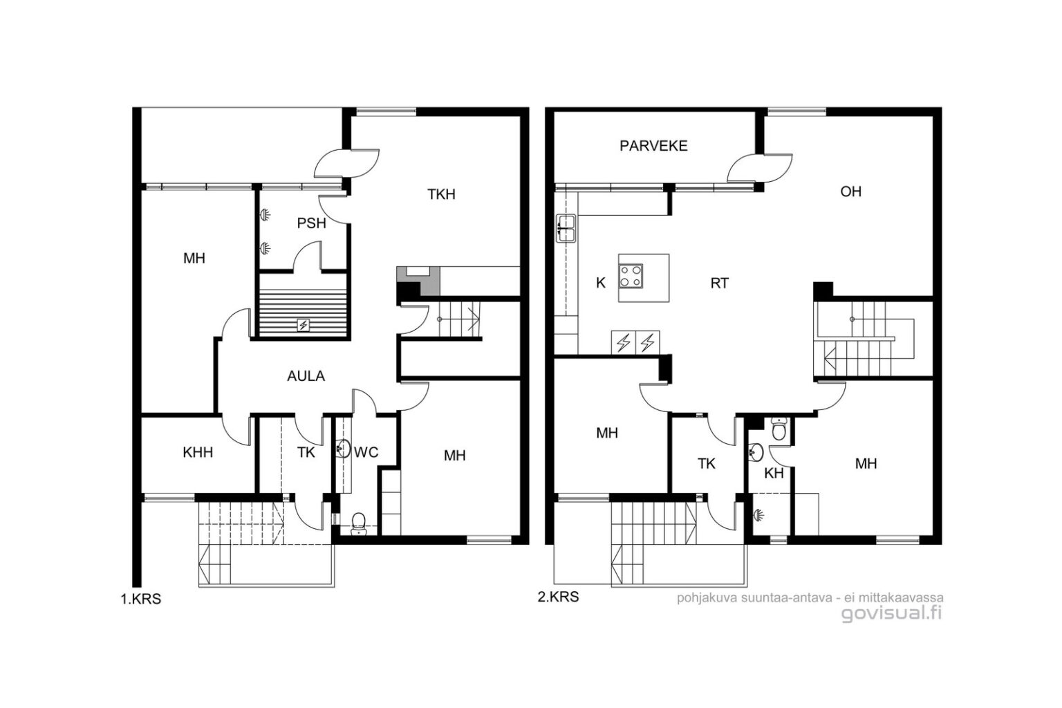 Rivitalo 5h, k, takkah, 2xwc, 2xpsh, s, khh, aula, 2xtuulikaappi, parv